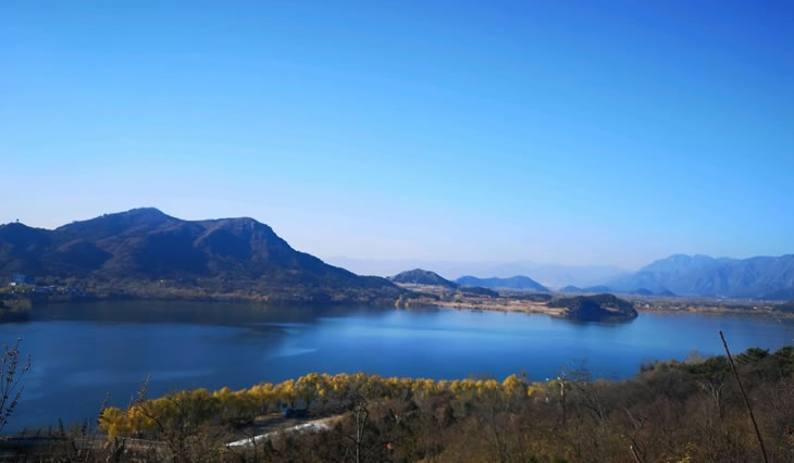 十三陵水庫(kù) 十三陵水庫(kù)位于北京市昌平區(qū)十三陵鎮(zhèn),水庫(kù)建于1958年。為山區(qū)盆地水庫(kù),占地面積751公頃,其中陸地面積440公頃,水面311公頃。水庫(kù)四周群山矗立,兩岸有大片臺(tái)地、坡地,水面平穩(wěn),水深變化較小。水面受開(kāi)闊度、水深和不同環(huán)境色彩影響,顯現(xiàn)出不同景觀效果。如在大壩附近,山高水深,水面倒映山影。而水庫(kù)上游,水面寬闊、岸坡平緩,視野開(kāi)闊,在夕陽(yáng)映照下,遠(yuǎn)山連綿,近水蕩漾。那點(diǎn)綴在遠(yuǎn)山近水之間的片片果林及點(diǎn)點(diǎn)皇陵,更增添了一層飄忽不定的朦朧色彩。