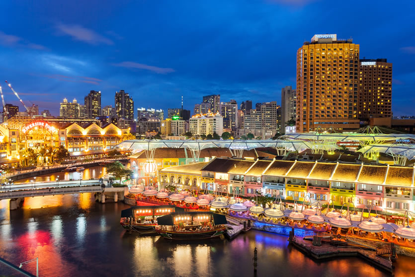 克拉碼頭 克拉碼頭位處新加坡河河畔,克拉碼頭昔日是個(gè)繁忙的貨物起卸岸及貿(mào)易中心,在改造計(jì)劃下,悉數(shù)變作餐館及酒吧。原來的60家倉庫和商店經(jīng)發(fā)展已成為200家商店、餐廳、酒吧和娛樂場(chǎng)所。駁船碼頭在克拉碼頭的下游,舊時(shí)的倉庫已經(jīng)改頭換面,這里至少有35家風(fēng)格各異的酒吧和餐廳,也是市區(qū)沿河最具吸引力的娛樂場(chǎng)所之一。