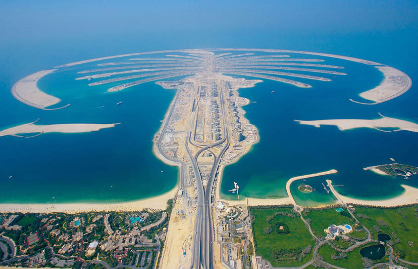 棕櫚島 棕櫚島是建立在迪拜的三座人工群島的總稱。它分為朱美拉棕櫚島、杰貝阿里棕櫚島、迪拉人工島。 每個(gè)島上都有大量的別墅、公寓發(fā)售,為整個(gè)迪拜酋長(zhǎng)國(guó)增添了諸多供不應(yīng)求的海灘。耗資140億美元打造而成的迪拜棕櫚島被譽(yù)為“世界第八大奇跡”。 每座島嶼包括三部分:“樹(shù)干”、“樹(shù)冠”和新月型圍壩。島上還將種植12000棵棕櫚樹(shù),這些樹(shù)苗正在位于朱梅拉的苗圃里栽培。整座島嶼就是一個(gè)巨大的避暑勝地和游玩天堂,上面擁有2400套海邊住房,可以入住5000人。另外,還有運(yùn)動(dòng)場(chǎng)、健身房和電影院等設(shè)施。