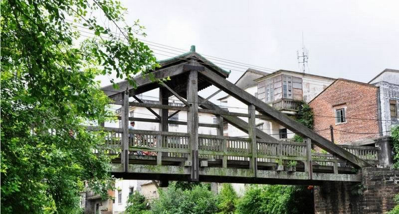 惠愛橋又名舊橋、西門橋,位于合浦縣廉州鎮(zhèn)惠愛路西門江上,宣統(tǒng)三年(1911年)建成。橋身為坤甸木當(dāng)?shù)厮追Q“三鉸拱”。橋長36米,寬2.75米,臺距18.4米,橋面至橋頂高5.64米。