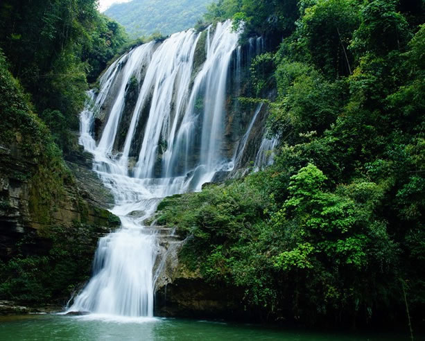 環(huán)江牛角寨瀑布景區(qū),又名鳳凰山瀑布景區(qū),牛角寨瀑布景區(qū)成功創(chuàng)建“國家3A景區(qū)”和“廣西生態(tài)旅游示范區(qū)”,是2009年環(huán)江毛南族自治縣最新發(fā)現(xiàn)的原生態(tài)旅游觀光瀑布群,景區(qū)位于環(huán)江毛南族自治縣明倫鎮(zhèn)八面村牛角屯,平均海拔700米—900米,山地相對高度較大,氣候溫暖宜人。 牛角寨瀑布群景區(qū)坐落在環(huán)江環(huán)江毛南族自治縣中部的明倫鎮(zhèn),離縣城42公里,離貴州省荔波縣小七孔景區(qū)也很近。景區(qū)占地10多平方公里,屬喀斯特地貌。景區(qū)內(nèi)叢峰疊起連綿、森林繁茂、山幽谷深、溪流潺潺,瀑布成群、潭池如境,是集峰叢、峽谷、溪流、瀑布、潭池為一體的自然生態(tài)景觀。瀑布群中最大的七仙女瀑布,寬60米高50米,銀白色的瀑布流水飄然瀉下,形似仙女在空中裙帶飄逸,雋永秀麗,被譽為"廣西的黃果樹"。景區(qū)內(nèi)有聞名區(qū)內(nèi)外的"五香"(香豬、香牛、香菇、香鴨、香粳)美食、特產(chǎn)。牛角寨瀑布群景區(qū)是康體養(yǎng)生、休閑度假、觀光游憩之圣地!