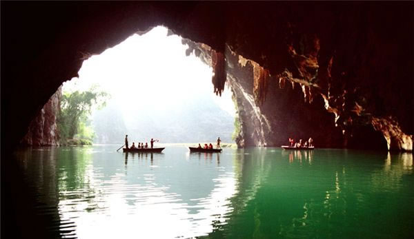 百鳥巖位于甲篆鄉(xiāng)烈屯西北面的漠齋山下,別名龍虎洞。因洞內(nèi)燕子棲集,蝙蝠掠飛,又名百鳥洞。盤陽河自吉屯白熊洞潛入山下,形成1000多米的伏流暗河后,在此洞流出。洞口寬50米,一石壁把洞口分成兩個(gè)略呈三角形的左右洞口。左側(cè)洞口寬40米,高15米,兩洞口內(nèi)側(cè)相通。洞深500米,蜿蜒曲折,直通與白熊洞一山之隔的拉類坳下的一個(gè)側(cè)洞口。洞中水平如鏡,深不可測,寬處約40米,窄處10米,從洞口行舟至300米轉(zhuǎn)折處,距水面30米處有一圓形天窗,山坳之光照到水面,猶如舞臺上的光束,色彩紛呈,近右側(cè)洞口處有沙灘,可?恐鄞。沙灘右側(cè)是一塊30多平方米的石臺,臺面深溝淺窩,坑坑坎坎,石臺一側(cè),洞壁雪白,可攀援其中。有石鷹、石柱、石幔、石觀音菩薩等,百態(tài)千姿,令人目不暇接。石臺的周圍有仙女梳妝、海螺石,石螺對面有石桌、石缸和石松果等。側(cè)面洞口外香椿林下野花艷目植被繁衍,把洞口點(diǎn)綴得幽靜雅致。洞中歧洞叉水道不可勝數(shù),密如蜂房,不知所向,整個(gè)洞仿佛一座裝飾華麗、景幻莫測的水下龍宮。其奇特的景象似桂林蘆笛巖,又因非乘舟不能游覽,游人贈(zèng)予“水上蘆笛巖”的美譽(yù)。