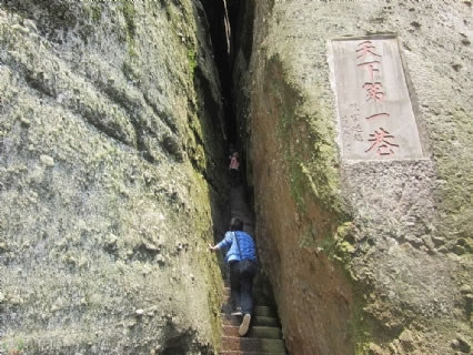 被稱(chēng)為崀山第一絕的天下第一巷,全長(zhǎng)238.8米,兩側(cè)石壁高80—120余米,最寬處0.8米,最窄處0.33米,可謂世界一線天絕景。