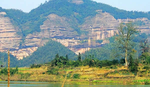 銅梁山位于湘潭縣石鼓鎮(zhèn)境內,山脈海拔700多米,地勢極為偏僻,正好處于湘潭縣與雙峰縣的交界之處。銅梁山名稱由來還有個美麗的傳說。在雙峰縣井字鎮(zhèn)與湘潭縣、湘鄉(xiāng)市交界處,有一座大山叫昌山。主峰靈應峰海拔755.1米,是南岳72峰之一。在主峰與鷹尖石之間,橫臥著一條長達2公里的一字形平脊嶺,當地人叫它“一字大脊”。相傳有一仙人挑著兩個大小不一的籮筐,掌燈時分就來到了大山腳下的花山村。熱情好客的花山人見了這位外來客人,格外歡喜,他們以美酒佳肴相陪,不知不覺已到雞鳴。仙人突然想起師父“雞鳴前一定要翻過大山”的教誨,趲告辭,挑起擔子飛也似的上山去?墒,送客的花山人一會兒便發(fā)現,那人的擔子擱在了山頂,扁擔成了一條“一字脊”,兩個籮筐便成了一字脊兩端的“巒柱”,形似一個巨大的銅梁。因此,銅梁山這個美名便叫開了。