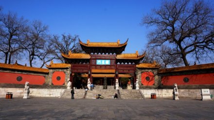 “萬仞宮墻”照壁面臨運(yùn)瀆,全長近百米。照壁南側(cè)有四個(gè)磚刻大字“萬仞宮墻”,每個(gè)字約1米見方。仞,是度量單位,我國古代八尺或七尺叫做一仞!叭f仞宮墻”出自《論語·子張篇》:“……夫子之墻高數(shù)(萬)仞,不得其門而入”,意思是贊喻孔子知識(shí)淵博,道德文章水平非常之高。