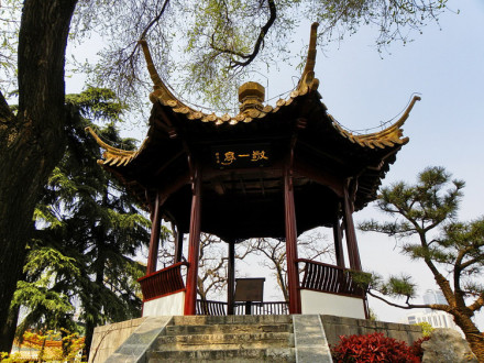 大成殿后是崇圣殿,亦稱先賢祠,歇山頂,檐下斗拱。殿后高處有敬一亭,亭東有飛云閣、飛霞閣等;閣前有御碑亭,碑上刻乾隆六巡江南時(shí)為朝天宮景區(qū)所題詩文,故名。敬一亭兩旁疊石堆山,筑水池,布置庭院,這里是治城的最高點(diǎn)。