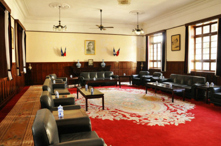 總統(tǒng)府會(huì)客室是國民政府和總統(tǒng)府時(shí)期,在舉行正式儀式前,蔣介石、林森或李宗仁等在此短暫休息的地方,同時(shí)也兼作內(nèi)賓接待室。內(nèi)有一套間作為蔣介石的臨時(shí)辦公室,有時(shí)蔣介石不到總統(tǒng)辦公樓而在此辦公。1946年國共談判也曾在這里舉行。1949年2月27日,“代總統(tǒng)”李宗仁曾在此會(huì)見由北平歸來的“上海和平代表團(tuán)”顏惠慶、邵力子、章士釗等一行。