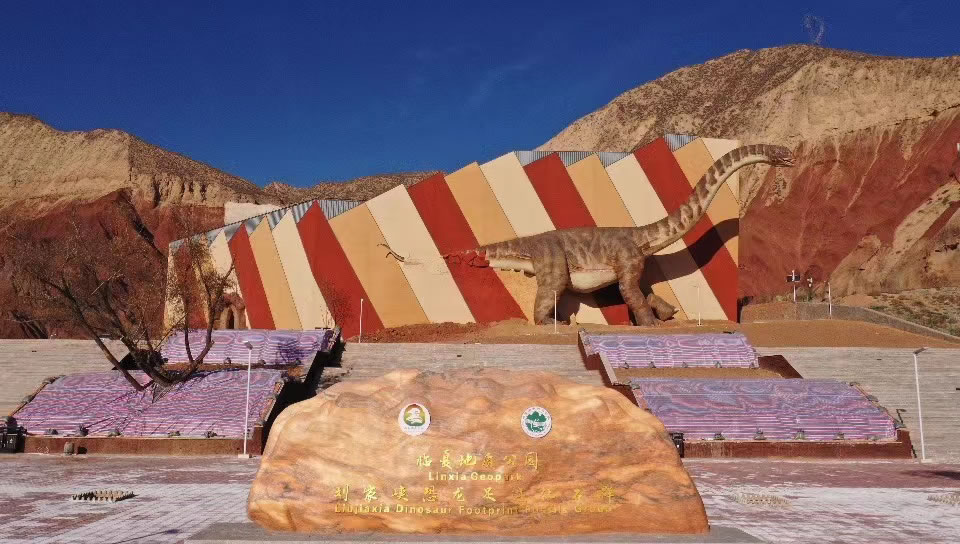 - 核心特色:以白堊紀(jì)恐龍足印群為核心,揭露面積2800平方米,含11類150組1831個足跡,最大蜥腳類足印長150厘米、寬120厘米,步幅375厘米,創(chuàng)世界之最。配套恐龍臥跡、尾部拖痕、糞跡化石及蘭州龍、劉家峽黃河巨龍等骨骼化石,地質(zhì)博物館、5D影院、游步道等設(shè)施完善,兼具科研、科普與旅游價值。