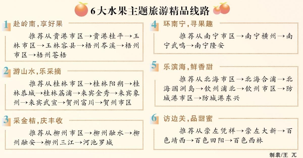 近日,全國各地游客紛紛奔赴廣西實現(xiàn)“水果自由”。結(jié)合廣西目前的時令水果(1月至2月),自治區(qū)文化和旅游廳與自治區(qū)農(nóng)業(yè)農(nóng)村廳聯(lián)合推出6大水果主題旅游精品線路,讓大家暢游廣西,一路有好果子吃。