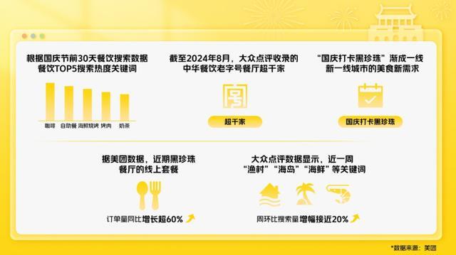 “國慶打卡黑珍珠”漸成一線、新一線城市的美食新需求。據(jù)美團(tuán)數(shù)據(jù)顯示,近期黑珍珠餐廳的線上套餐訂單量同比增長超60%,深圳、福州、廣州地區(qū)提前一周預(yù)訂國慶假期黑珍珠餐廳座位的訂單量同比去年增長均超過2倍,南京、無錫增幅緊隨其后。數(shù)據(jù)顯示,20-30歲的消費(fèi)者旅行時(shí)更喜歡打卡美食市集,為此一些城市還聯(lián)合平臺(tái)線上線下打造美食市集等消費(fèi)新業(yè)態(tài)。