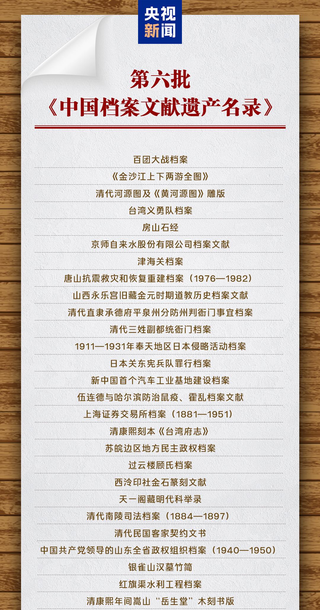 檔案局公布第六批《中國檔案文獻遺產(chǎn)名錄》