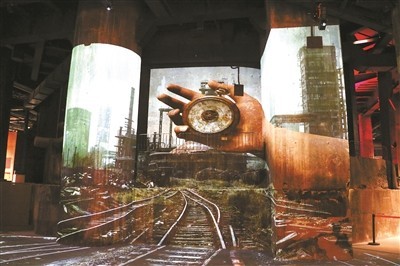 走進三高爐,以爐芯為載體放映的數字片《致敬鋼鐵》,呈現出獨特的觀影效果。爐芯、墻壁、地面,瞬間變?yōu)槠聊,觀眾可360度沉浸在鋼鐵故事中,了解北京乃至中國鋼鐵工業(yè)發(fā)展有重要貢獻的“功勛高爐”的歷史。