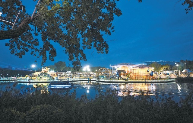 阿派朗創(chuàng)造力星球游樂(lè)設(shè)施在燈光輝映下活力盡顯。