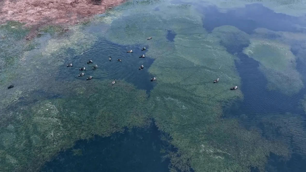 陽光灑落時,湖水清澈見底,魚兒在水中自在游弋,與岸邊景致構成絕佳畫面。此外,黑翅長腳鷸也不時現身灘涂,為這幅生態(tài)圖景再添一抹靈動色彩。
