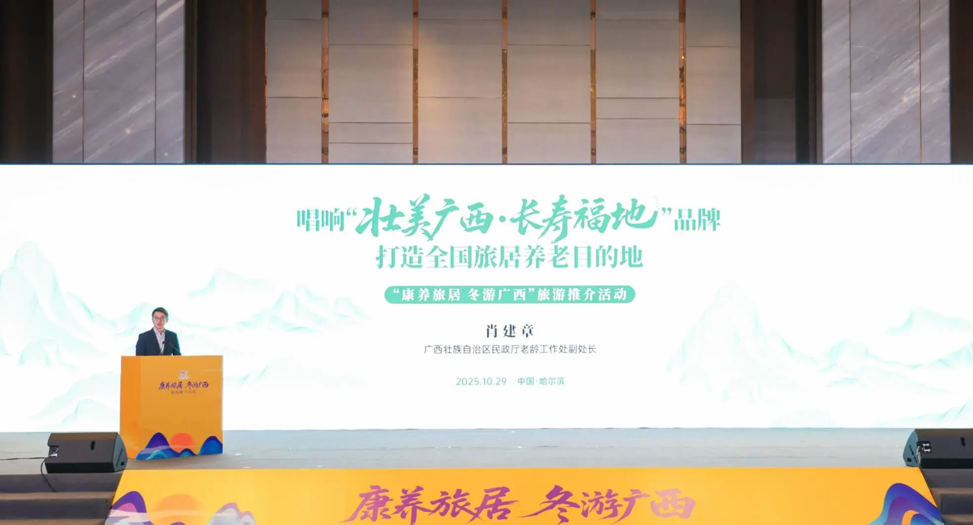 10月28日-29日,由廣西壯族自治區(qū)文化和旅游廳、民政廳、住房城鄉(xiāng)建設(shè)廳、農(nóng)業(yè)農(nóng)村廳、體育局、林業(yè)局共同主辦的“康養(yǎng)旅居 冬游廣西”旅游推介活動(dòng)在哈爾濱市舉辦。