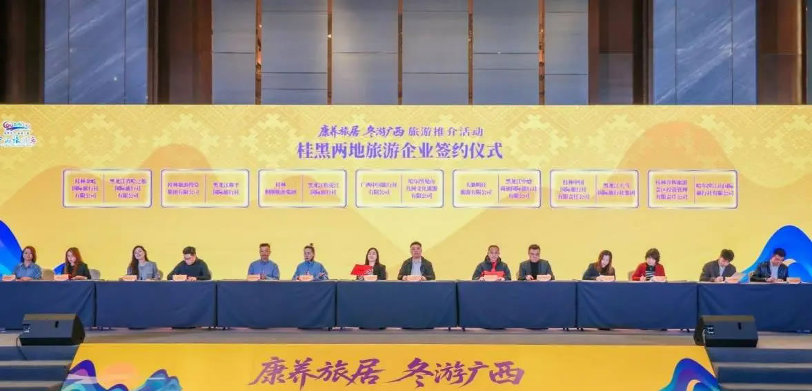 此次推介活動(dòng)吸引了100多家桂黑兩地旅游企業(yè)進(jìn)行深度交流,并開展桂黑兩地文旅企業(yè)產(chǎn)品對(duì)接會(huì),達(dá)成多項(xiàng)合作。活動(dòng)現(xiàn)場(chǎng),7家廣西旅游企業(yè)與多家黑龍江省旅游企業(yè)成功簽約。