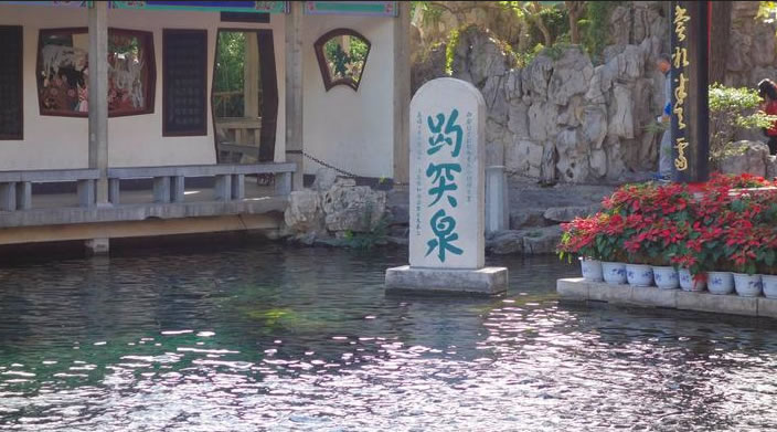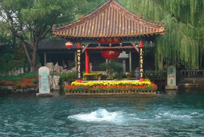 趵突泉又叫檻泉,是濼水的源頭,如今已有二千七百年的歷史!磅劳蝗,三窟并發(fā),聲如隱雷”,“泉源上奮,水涌若輪”。泉水一年四季恒定在攝氏18度左右,嚴冬,水面上水氣裊裊,薄霧冥冥,一邊泉池波光粼粼,一邊是亭臺樓閣,金壁煌煌,構(gòu)成了一幅奇妙的人間仙境。歷代著名文學家、哲學家、詩人諸如曾鞏、蘇軾、張養(yǎng)浩、王守仁、蒲松齡等都有吟泉都忍不住在此留下美文以志之。