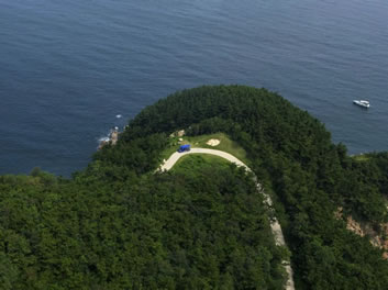 旗頂山是劉公島最高峰,海拔153.5米。旗頂山炮臺是駐島清軍6座炮臺中規(guī)模較大的一座,炮臺造型巧妙,堅固實用,由時任北洋海軍軍事總教習的德國人漢納根負責設計。炮臺分地下掩體和地上炮位兩部分,上設德國克虜伯兵工廠制造的240毫米口徑平射炮4門,這種炮口徑大,殺傷力強,其與南北兩海岸炮臺配合,火力足以封鎖威海灣南北海口。兵舍、掩體及彈藥庫位于炮臺南側(cè)底部,依崖而建,十分隱蔽。周邊綠樹環(huán)繞,風光優(yōu)美,桑樹、槐樹、山杏、竹子等樹木,郁郁蔥蔥。