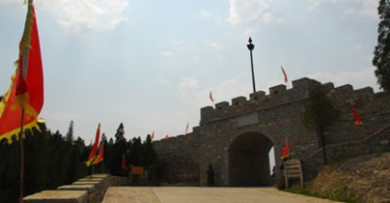 位于旅游北線,根據唐賽兒起義的資料修建的石質城門建筑,是唐三寨古寨的西寨口,也是進入北、東、南三處山寨的重要入口,所以又叫“三寨關”。