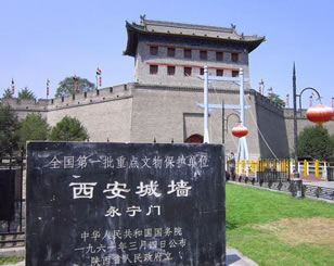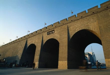 雄偉壯觀的西安城墻已成為市區(qū)最吸引人的觀光勝地之一。沿城墻外側已建成“環(huán)城公園”,成為城市居民晨練的絕佳活動場所。 |