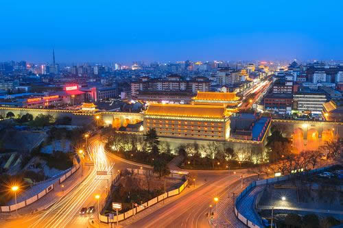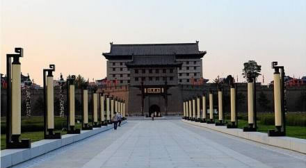 永寧門俗稱南門,是西安城門中資格最老、沿用時間最長的一座,建于隋初。是皇城南面三座門中偏東的一座,稱安上門,唐末韓建縮建新城時留作南門,明代改名永寧門。永寧門箭樓在西安保衛(wèi)戰(zhàn)(也稱二虎守長安)中被毀,于2013年在原址上重建。永寧門規(guī)格為6+1式門洞。