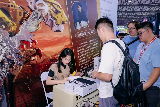 作為國創(chuàng)變形機甲代表性IP,猛獸匣(BEASTBOX)系列成為本次52TOYS展區(qū)的最大亮點,產(chǎn)品和內容成果頗豐。備受玩家期待的猛獸匣首部官方小說《猛獸匣:金屬之歌》珍藏版在展會現(xiàn)場超前發(fā)售,小說作者、曾榮獲中國科幻銀河獎最佳新人獎的科幻作家王諾諾親臨現(xiàn)場簽售。小說以其精美的裝幀與引人入勝的設定,迅速成為資深玩家與科幻愛好者爭相收藏的對象,現(xiàn)場等候簽售及購買的粉絲排起長龍。