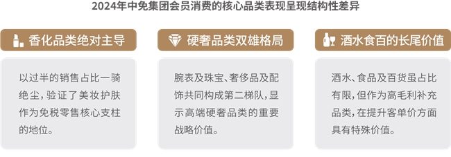8.消費呈現(xiàn)“美妝霸榜”、“硬奢守局”、“酒水突圍”新格局。香化方面,彩妝香水增長亮眼,外籍旅客、男性客群、國潮品牌成為重要增長點,中免通過“線下定制護(hù)膚方案+線上精準(zhǔn)推送”提升復(fù)購;奢侈品及配飾方面,消費結(jié)構(gòu)多元化,超高端市場增長顯著,輕奢區(qū)間保持穩(wěn)定需求,中免以“私人導(dǎo)購+機(jī)票報銷”等尊享服務(wù)鎖定高端客群;腕表及珠寶方面,品類分化顯著,首飾品類同比增長,腕表需求區(qū)域性特征突出;酒水方面,市場擴(kuò)容升級,品類及人群消費分層顯著,渠道互補(bǔ)發(fā)展,呈現(xiàn)出規(guī)模擴(kuò)張與結(jié)構(gòu)升級并行的顯著特征;食品及百貨方面,市場穩(wěn)健擴(kuò)容,圈層特征鮮明,Z世代和銀發(fā)人群引發(fā)情感和健康消費變革,中免針對性布局“國潮品牌+細(xì)分場景”,精準(zhǔn)匹配圈層需求。中免集團(tuán)已形成包含精品、香化、煙酒等全品類、超36萬SKU的商品矩陣,并在2024年成功引入200多個新品牌,獨家發(fā)售19個系列500余款全球限量商品,商品競爭力持續(xù)增強(qiáng)。