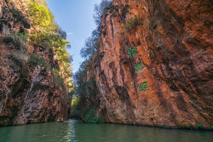 蔭翠峽整條峽長(zhǎng)1000米,蔭翠峽風(fēng)景區(qū)全長(zhǎng)1公里,是位于昆明東部宜良縣城九鄉(xiāng)的沉潭平湖,最大水深16米。蔭翠峽河道寬度一般的8米至10米,最寬處不到20米。