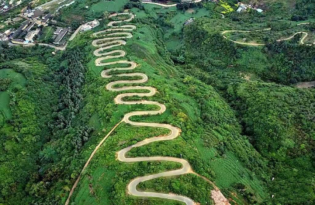 68道拐是宜良縣城西郊通往靖安哨村的盤山公路,為明清時(shí)期的“通京大道”,亦稱“茶馬古道”,短短6.8公里,就有68道彎。是世界公路史上的奇跡,彎道最為密集,可稱為“天下彎道最密集的公路”。