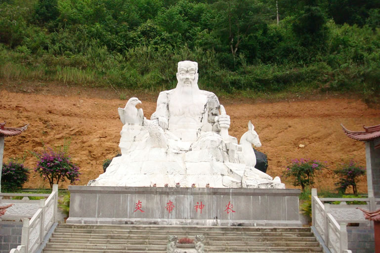 神農(nóng)祠:位于雙江自治縣勐庫鎮(zhèn)北部南勐河上游,勐庫大雪山萬畝野生古茶樹群落山腳的古茶谷中心地帶。祠內(nèi)塑有一尊采用雪花白石雕制而成的炎帝神農(nóng)塑像,高9.5米,基座9米,寬4米。對稱建有兩間傳統(tǒng)民族風(fēng)格房屋,左為茶展館(以茶之源、茶之魂、茶之歌三個(gè)方面用54張圖片展示雙江勐庫大葉茶原生地形象和茶葉產(chǎn)業(yè)發(fā)展情況),右為茶藝館(在墻體上精心制作一幅反映雙江拉祜族、佤族、布朗族、傣族飲茶習(xí)俗為主的壁畫,高2米,長13.8米)。塑像基座四周及中心廣場共鋪貼大理青石板530.9平方米,從神農(nóng)祠牌坊至炎帝神農(nóng)塑像共有69級臺(tái)階。