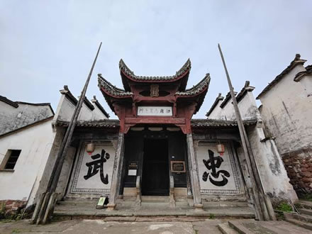 位于村的中心,坐北朝南。前面有一個(gè)名曰“鐘池”的水塘,鐘池有一道墻,正面是一幅大八卦圖(左),背面是一個(gè)“!弊帧4蠊梦挥阽姵乇眰(cè),始建于明代,據(jù)說(shuō)是江南地區(qū)僅存的諸葛亮紀(jì)念堂。祠堂前后五進(jìn),建筑面積700平方米。里間十分開闊,可供數(shù)千人舉行活動(dòng)。堂內(nèi)壁上繪有三顧茅廬、舌戰(zhàn)群儒、草船借箭、白帝托孤等有關(guān)諸葛亮的故事壁畫。堂外圍墻旁現(xiàn)存六株龍柏,暗示諸葛后人六族繁衍,人丁興旺。門庭飛閣重檐,高約10米,上懸一塊橫匾“敕旌尚義之門”。頂層有明英宗于正統(tǒng)四年(1439)所賜盤龍圣旨立匾一方,表彰諸葛彥祥賑災(zāi)捐谷千余石的義舉。整座建筑古樸典雅,氣勢(shì)恢宏,保存完好。