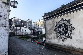 以鐘池為中心,有八條小巷向四面八方延伸,直通村外八座高高的土崗,其平面酷似八卦圖。小巷又派生出許許多多橫向環(huán)連的窄弄堂,弄堂之間千門萬(wàn)戶,星羅棋布著許多古老縱橫的民居。接近鐘池的小巷較為筆直,往外延伸時(shí)漸趨曲折,而許多小巷縱橫相連,似通非通,猶如迷宮一般。外人進(jìn)入小巷,往往好進(jìn)難出,甚至迷失方向。