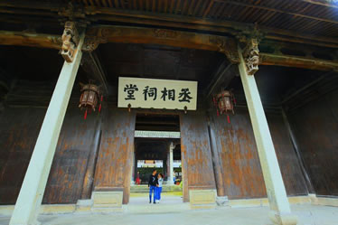 丞相祠堂也是為紀(jì)念諸葛亮而修建的,與大公堂相距百米,面積1400平方米。坐東朝西,平面按“回”字形布局,有屋52間,由門廳、中庭、廡廊、鐘鼓樓和享堂組成,古樸渾厚,氣勢(shì)非凡。祠堂雕梁畫棟,門窗欄桿等部件均雕刻精細(xì),美不勝收。中庭是祠堂最精彩的部分,中間四根合抱大柱,選用上好的松、柏、桐、椿四種木料制成,取“松柏同春”之意,祈求家族世代興旺。中庭兩邊廡廊各七間,塑諸葛后裔中的杰出人士,用來(lái)激勵(lì)諸葛子孫們奮發(fā)向上,成就一番事業(yè)。從廡廊拾級(jí)而上,兩旁分列鐘、鼓二樓。祠堂最后是享堂,中塑諸葛亮像,高2米余,兩側(cè)分侍諸葛瞻、諸葛尚及關(guān)興、張苞像,氣韻生動(dòng),呼之欲出。